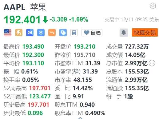 蘋果(AAPL.US)跌1.69%,報192.401美元。消息上,產品設計副總Tang