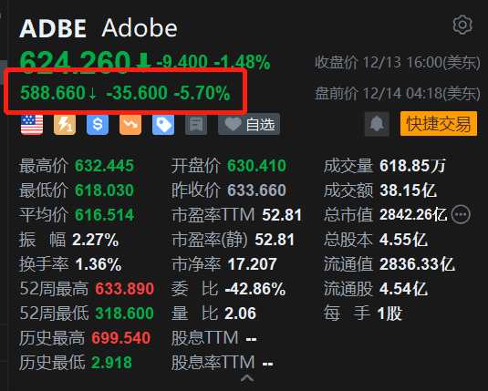 奧多比盤前跌近6% 業(yè)績展望遜預(yù)期且遭美國監(jiān)管機構(gòu)調(diào)查