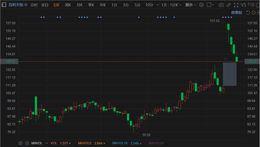 百利天恒(688506.SH)再度下跌超4%,3日連續(xù)回撤超15%,現(xiàn)報(bào)129.12元,總市值517億元。該股日前曾連續(xù)大漲,股價(jià)更是創(chuàng)下歷史新高位。公司此前發(fā)布提示,子公司與百時(shí)美施貴寶達(dá)成的合作協(xié)議是否能最終生效尚存不確定性。