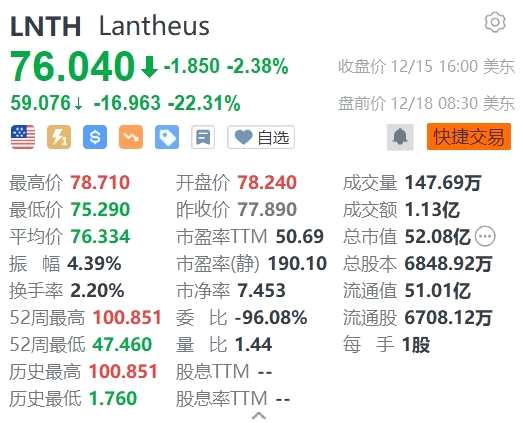 Lantheus(LNTH.US)美股盤前大跌逾22%,報(bào)59.076美元。根據(jù)美國證券交易委員會(SEC)12月15日披露的文件,Lantheus(LNTH.US)首席會計(jì)官Sabens Andrea于12月13日以每股平均價(jià)75.62美元售出341股普通股股份,價(jià)值約為2.58萬美元。
