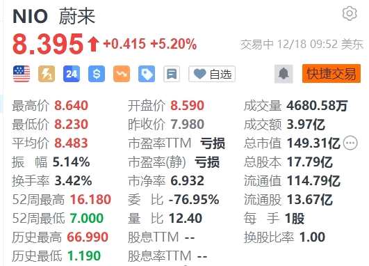 蔚來漲超5%,獲阿布扎比CYVN新一輪22億美元戰(zhàn)略投資