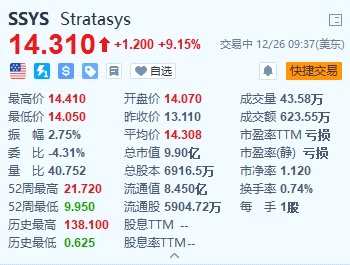 美股異動丨Stratasys漲超9% 獲競爭對手Nano Dimension溢價(jià)超25%收購要約