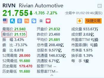 Rivian一度跌近10% 第四季度交付量輛略低于預(yù)期