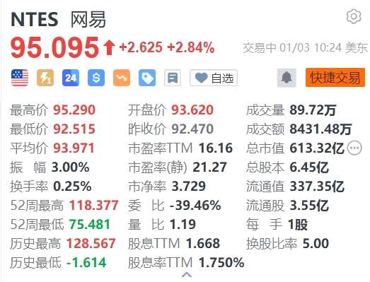 網(wǎng)易漲近3% 網(wǎng)易游戲宣布全線產(chǎn)品增設(shè)未成年人模式