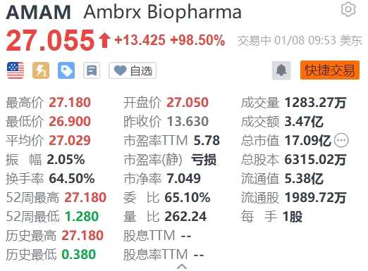 Ambrx暴漲超98%,獲強(qiáng)生高溢價(jià)收購