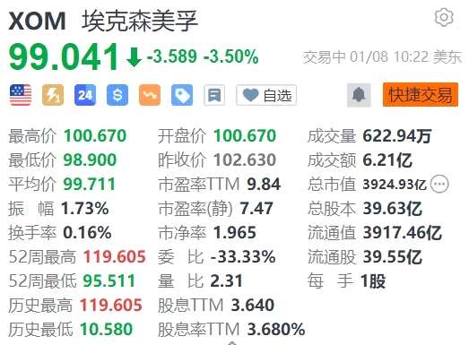 埃克森美孚跌3.5% 油市持續(xù)萎靡