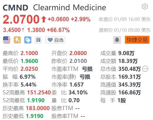Clearmind Medicine盤前暴漲超66% 與美國食品和藥物管理局召開A類會(huì)議