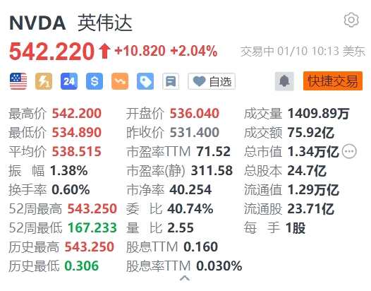 英偉達漲超2% 股價續(xù)創(chuàng)歷史新高