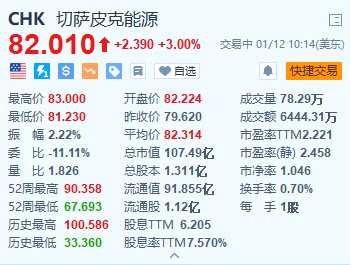 切薩皮克能源漲3% 擬與西南能源合并 交易價值74億美元
