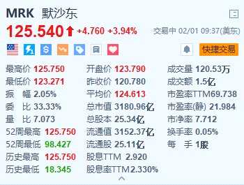 默沙東漲近4% Q4抗癌藥物銷售強(qiáng)勁 2024調(diào)整后EPS指引超預(yù)期