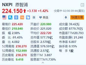 恩智浦漲1.4% Q4營收同比增長3%略高于預(yù)期 Q1指引基本符合預(yù)期