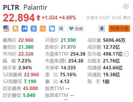 美國大數(shù)據(jù)分析公司Palantir(PLTR.US)漲4.68%,報(bào)22.894美元。美國知名投行Wedbush分析師丹·艾夫斯在最新報(bào)告中表示,在這場正在進(jìn)行的人工智能(AI)革命中,Palantir正在鞏固自己的領(lǐng)先地位。在該公司公布亮眼財(cái)報(bào)后,艾夫斯將Wedbush對該科技公司股票的12個月目標(biāo)價上調(diào)至30美元。