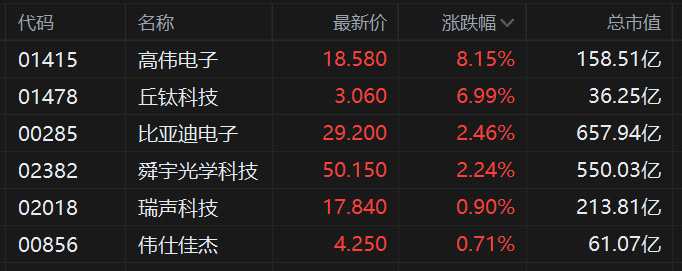 摘要: 來源:互聯(lián)網(wǎng)高偉電子漲超8%表現(xiàn)最佳,丘鈦科技漲7%,舜宇光學(xué)、瑞聲科技等跟漲。據(jù)悉,蘋果正在研發(fā)至少兩款可橫向折疊的翻蓋iPhone原型機(jī)。分析人士指出,隨著國產(chǎn)供應(yīng)鏈趨于成熟,