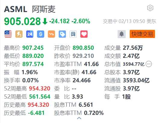 阿斯麥跌2.6% 歐股今日因錯誤交易創(chuàng)2022年以來最大跌幅