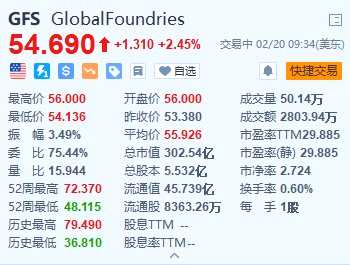 美股異動(dòng)丨格芯漲2.45% 將獲美國(guó)15億美元直接補(bǔ)貼資金