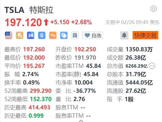 摘要: 來源:互聯(lián)網(wǎng)特斯拉(TSLA.US)漲2.68%,報197.12美元。據(jù)報道,墨西哥新萊昂州州長薩繆爾·加西亞透露,特斯拉墨西哥超級工廠的建設(shè)工作將于3月3日開始。
