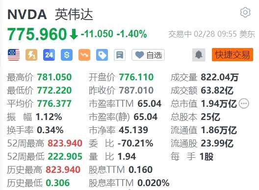摘要: 來源:互聯(lián)網(wǎng)英偉達(NVDA.US)跌1.4%,報775.96美元。根據(jù)美國證券交易委員會(SEC)2月27日披露的文件,英偉達(NVDA.US)董事JONESHARVEYC于2月23日以每股平均價8