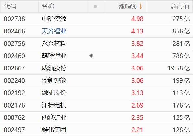 A股鋰礦股集體走強(qiáng),天齊鋰業(yè)漲超4%