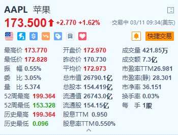 蘋果漲1.62% 中國最高規(guī)格旗艦店上海靜安Apple Store將于本月開業(yè)