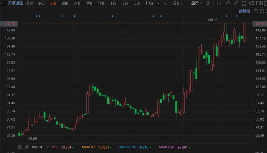 摘要: 來(lái)源:互聯(lián)網(wǎng)天孚通信(300394.SZ)快速拉升漲超7%,報(bào)147.2元有望再創(chuàng)歷史高價(jià),總市值580億元。昨日,滬深兩融數(shù)據(jù)顯示,天孚通信獲融資買入額2.46億元,近三日累計(jì)買入7.82億元。