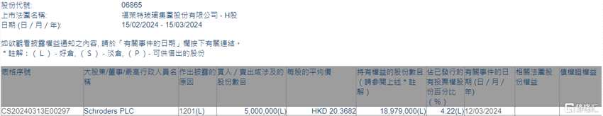 福萊特玻璃(06865.HK)遭Schroders PLC減持500萬股