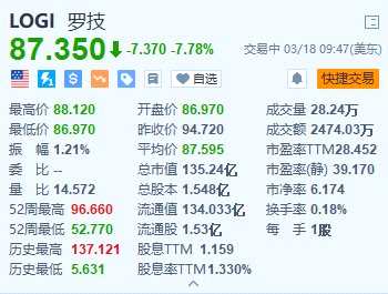 羅技跌7.78% 首席財(cái)務(wù)官將于5月離職