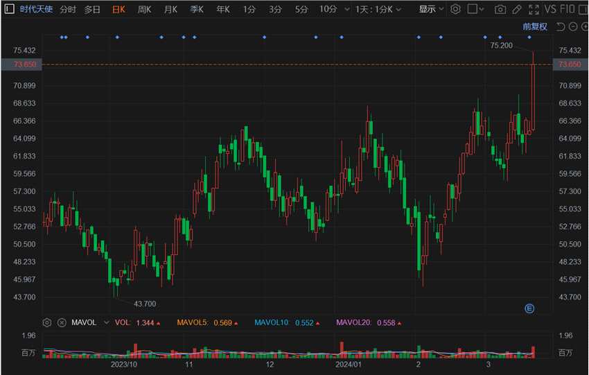 摘要: 互聯(lián)網(wǎng)3月20日|時代天使(6699.HK)大幅拉升漲超14%,高見75.2港元創(chuàng)7個月新高價,成交額放大至9581萬港元,總市值124.5億港元。公司2023年收入14.76億人民幣(下同),