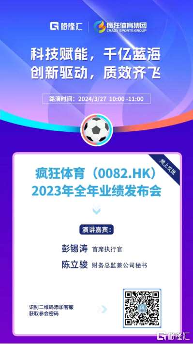 會議預(yù)告‖瘋狂體育(0082.HK)2023年全年業(yè)績發(fā)布會:科技賦能 千億藍(lán)海