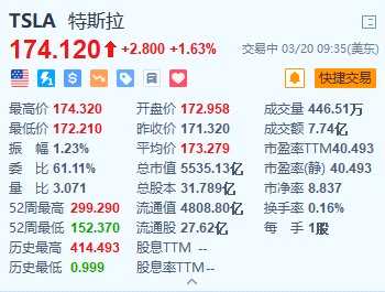 摘要: 特斯拉(TSLA.US)漲1.6%,報(bào)174.12美元。消息面上,特斯拉中國內(nèi)部消息稱,特斯拉即將在4月1日官方漲價(jià),ModelY車型售價(jià)調(diào)高5000元人民幣;同時(shí),