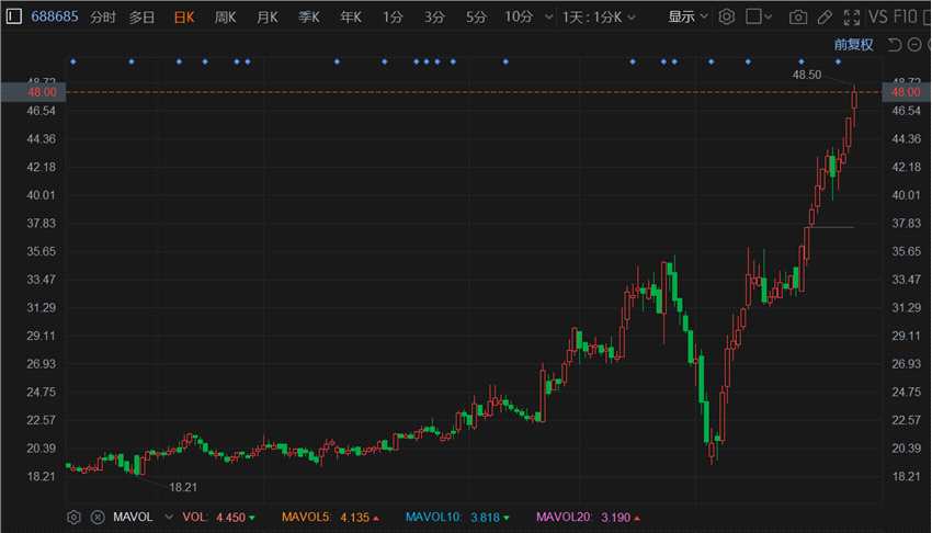摘要: 互聯(lián)網(wǎng)3月22日|邁信林(688685.SH)逆勢(shì)上漲逾4%,最高報(bào)48.5元續(xù)創(chuàng)歷史新高,2月初以來累計(jì)升幅高達(dá)130%,目前總市值53.7億元。目前公司對(duì)外在積極拓展新的客戶群體,
