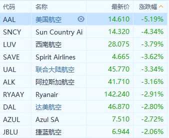 摘要: 美國航空跌約5.2%,西南航空跌約3.8%,聯合大陸航空跌3.3%,達美航空跌2.8%。波音在向航空公司交付737Max飛機方面落后于計劃,這種延誤迫使航空公司重新考慮今年剩余時間的航班時間表。
