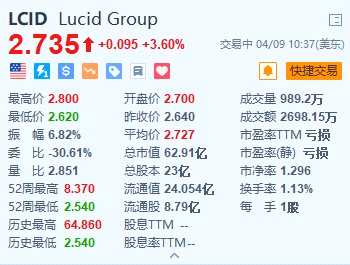 Lucid漲3.6% Q1交付量同比增長(zhǎng)40%