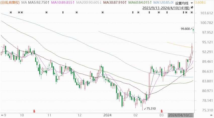 互聯(lián)網(wǎng)4月10日|恒生銀行(0011.HK)今日跳空高開,盤中最高漲6.11%報99.8港元,股價創(chuàng)2023年8月以來新高。消息面上,恒生銀行昨晚宣布啟動股份回購計劃,將回購不多于30億港元股份,自動股份回購計劃期限為4月10日起至9月9日,為期5個月。