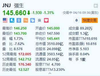 美股異動(dòng)|強(qiáng)生跌1.3% 第一季度銷售額略低于預(yù)期 縮窄EPS指引