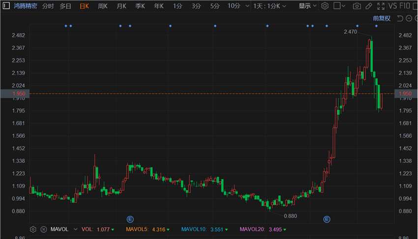 鴻騰精密反彈逾7% 此前4日累計回撤超25%