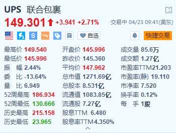 聯(lián)合包裹漲2.7% Q1調(diào)整后每股收益超預(yù)期
