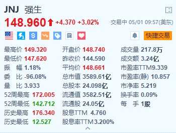 摘要: 5月1日|強(qiáng)生(JNJ.US)漲超3%,報148.96美元。消息面上,強(qiáng)生宣布子公司LLTManagementLLC提出的一項重組計劃,以全面、最終解決目前和未來針對公司及其在美國的關(guān)聯(lián)公司提起的滑石
