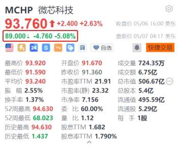 摘要: 5月7日|微芯科技(MCHP.US)美股盤(pán)前跌超5%,報(bào)89美元。微芯科技2024財(cái)年第四季度凈銷(xiāo)售額為13.3億美元,同比下滑超40%,略低于市場(chǎng)預(yù)期的13.4億美元;non-GAAP下每股收益為0