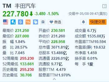 摘要: 5月8日|豐田汽車(TM.US)跌1.5%,報(bào)227.78美元。豐田公布截至3月31日的2024財(cái)年第四財(cái)季業(yè)績,營收同比增長14%,達(dá)11.073萬億日元;凈利潤同比飆升80%,達(dá)到9976億日元,
