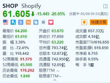 Shopify重挫超20% 一季度同比由盈轉(zhuǎn)虧