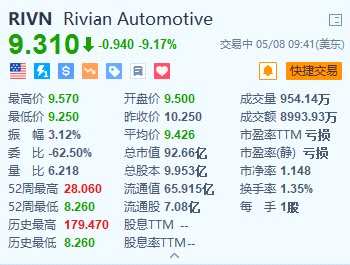 Rivian跌超9% Q1調(diào)整后每股虧損及全年產(chǎn)量指引遜預(yù)期