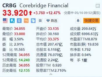 摘要: 5月16日|CorebridgeFinancial(CRBG.US)漲12.47%,報33.92美元。消息面上,日本最大的保險公司日本生命保險公司已同意以約38億美元現(xiàn)金收購Corebridge20%