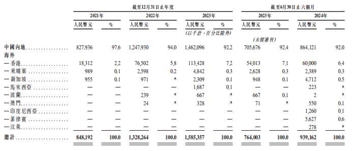 值得一提的是,多點來自除中國內(nèi)地以外市場的收入從2021年的2030萬元增加至2023年的1.23億元,成功突破億元,占總營收比例從2021年的2.4%上漲至7.8%。其中,中國香港市場表現(xiàn)突出,2023年貢獻(xiàn)的收入為1.13億元,占總營收的7.2%。