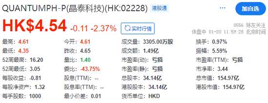 截至午間收市,每股報(bào)4.54港元,總市值約154.97億港元.