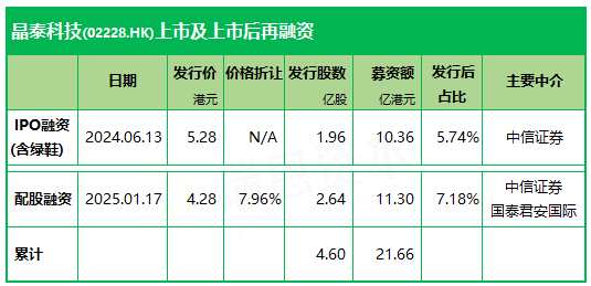 晶泰科技此次配股融資金額已超過其IPO所得募資,該公司于2024年6月13日在香港主板IPO上市,當(dāng)時(shí)募資9.89億港元,加計(jì)部分行使超額配股權(quán)額外所得,合計(jì)募資約10.36億港元。