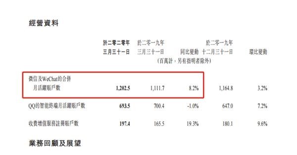數(shù)據(jù)顯示,微信及WeChat的合并月活躍賬戶(hù)數(shù)仍保持增長(zhǎng),已達(dá)到12.02億,同比增長(zhǎng)8.2%,環(huán)比增長(zhǎng)3.2%;QQ的移動(dòng)端月活躍賬戶(hù)數(shù)為6.93億,同比下降1%,環(huán)比增長(zhǎng)7.2%。