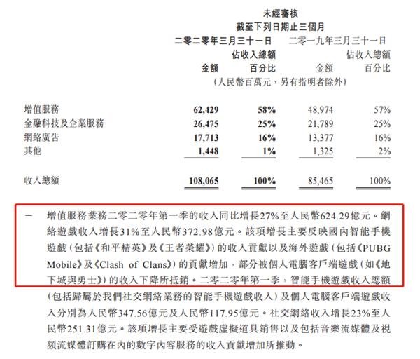 在疫情“宅經(jīng)濟(jì)”影響下,用戶(hù)在家休閑時(shí)間大幅增加,游戲和視頻音樂(lè)等停留時(shí)間增長(zhǎng),加加速了騰訊整個(gè)增值板塊業(yè)務(wù)的增長(zhǎng)。