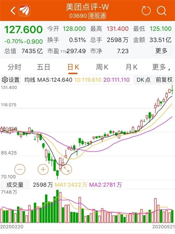 美團(tuán)股價(jià)兩月漲70%