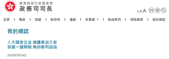 特區(qū)政府三位司長和多位局長都在他們的網(wǎng)志發(fā)表文章,從多角度說明《決定》的合憲、合法和合理的基礎(chǔ),并指出保障國家安全和打撃恐怖主義活動將令市民可回復(fù)享有安穩(wěn)的生活環(huán)境,為香港帶來有利營商和投資的環(huán)境。