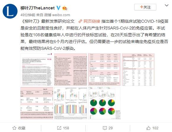 《柳葉刀》發(fā)表的這篇論文是全球第一個(gè)新冠病毒疫苗的人體臨床數(shù)據(jù),意義重大。雖然還有6個(gè)月時(shí)間才能評(píng)估最終結(jié)果,但是目前取得的成就無疑是國內(nèi)外疫苗研發(fā)中比較樂觀的。